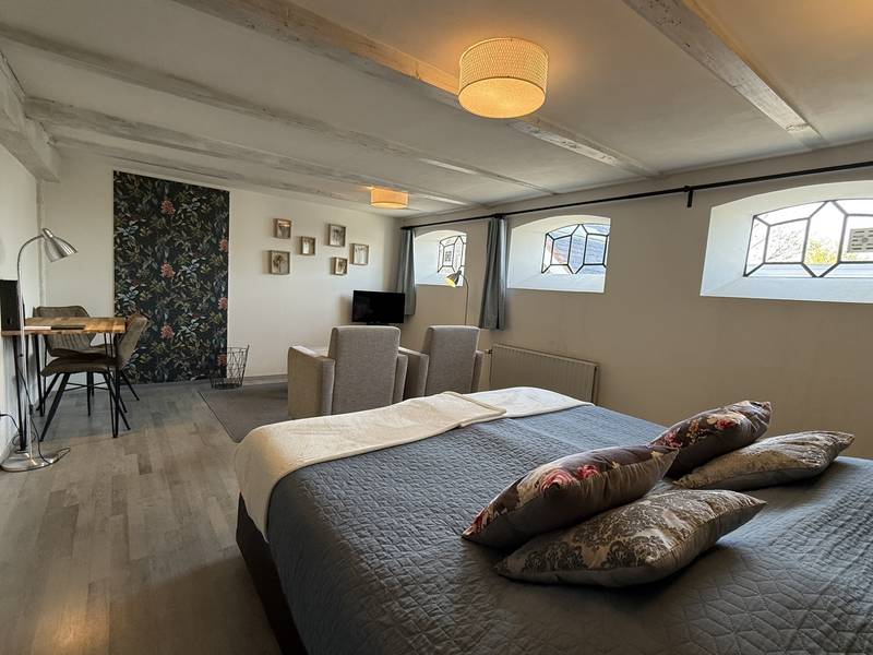 In de boerderij beschikken wij over 4 Bed & Breakfast kamers. Beneden zijn twee 2-persoons kamers en boven bevinden zich een 2-persoons kamer en een 4-persoons familiekamer. Alle kamers zijn zeer ruim opgezet en hebben ieder een eigen sfeer. De kamers bieden comfortabele bedden, zithoek met TV, luxe badkamer met toilet, douche en/of ligbad. Nespresso koffiezetapparaat en waterkoker met onbeperkt koffie/thee en WiFi.